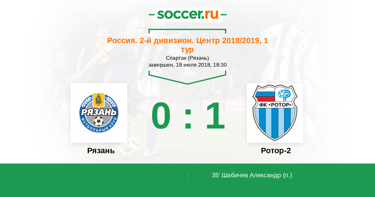 Россия. Вторая лига. Группа 3 11.08.2017 Рязань Логотип футбольный клуб Рязань 4:1 Логотип футбольный клуб Ротор-2 (Волгоград) Ротор-2