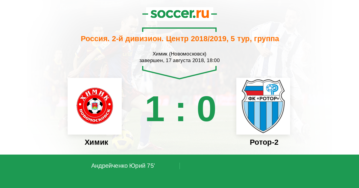 Россия. Вторая лига. Группа 3 27.07.2017 Химик Логотип футбольный клуб Химик (Новомосковск) 2:1 Логотип футбольный клуб Ротор-2 (Волгоград) Ротор-2