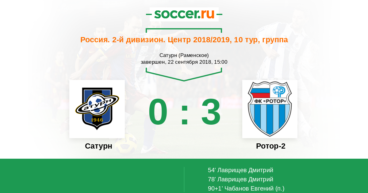 Россия. Вторая лига. Группа 3 08.09.2017 Сатурн Логотип футбольный клуб Сатурн (Раменское) 1:1 Логотип футбольный клуб Ротор-2 (Волгоград) Ротор-2