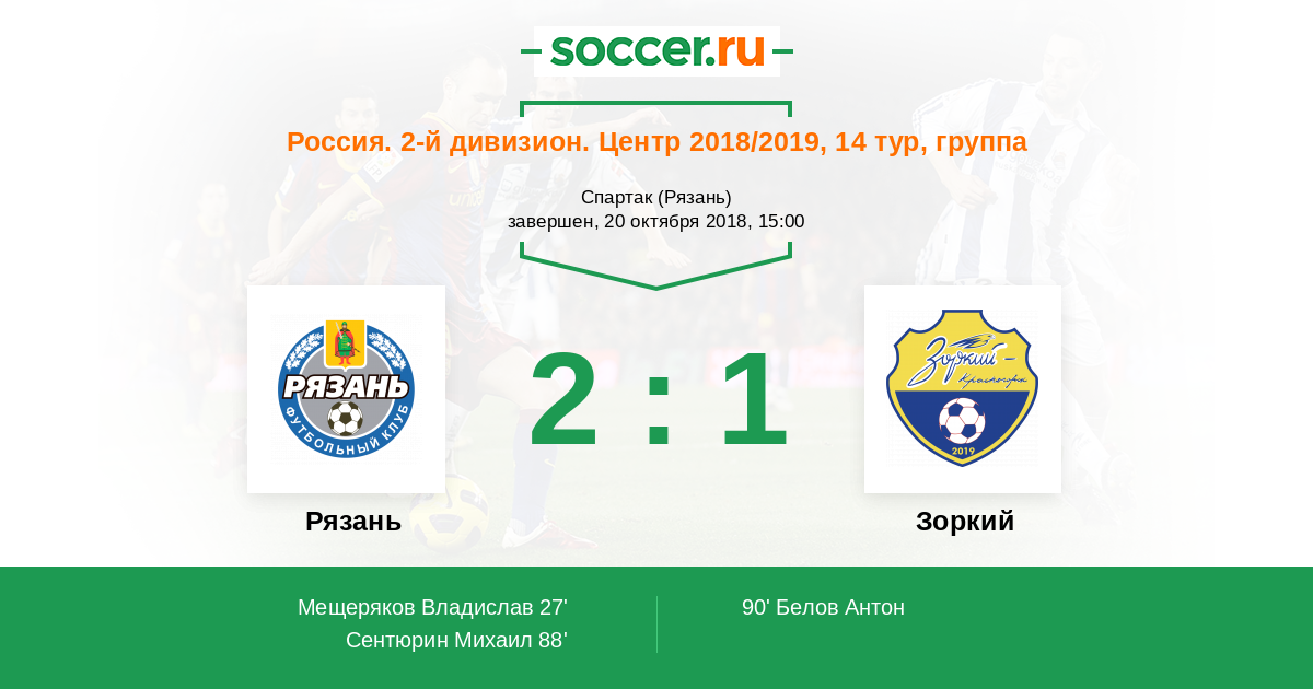 Россия. Вторая лига. Группа 3 26.07.2018 Зоркий Логотип футбольный клуб Зоркий (Красногорск) 1:2 Логотип футбольный клуб Рязань Рязань