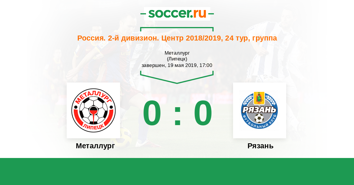 Россия. Вторая лига. Группа 3 27.05.2018 Рязань Логотип футбольный клуб Рязань 1:0 Логотип футбольный клуб Металлург (Липецк) Металлург