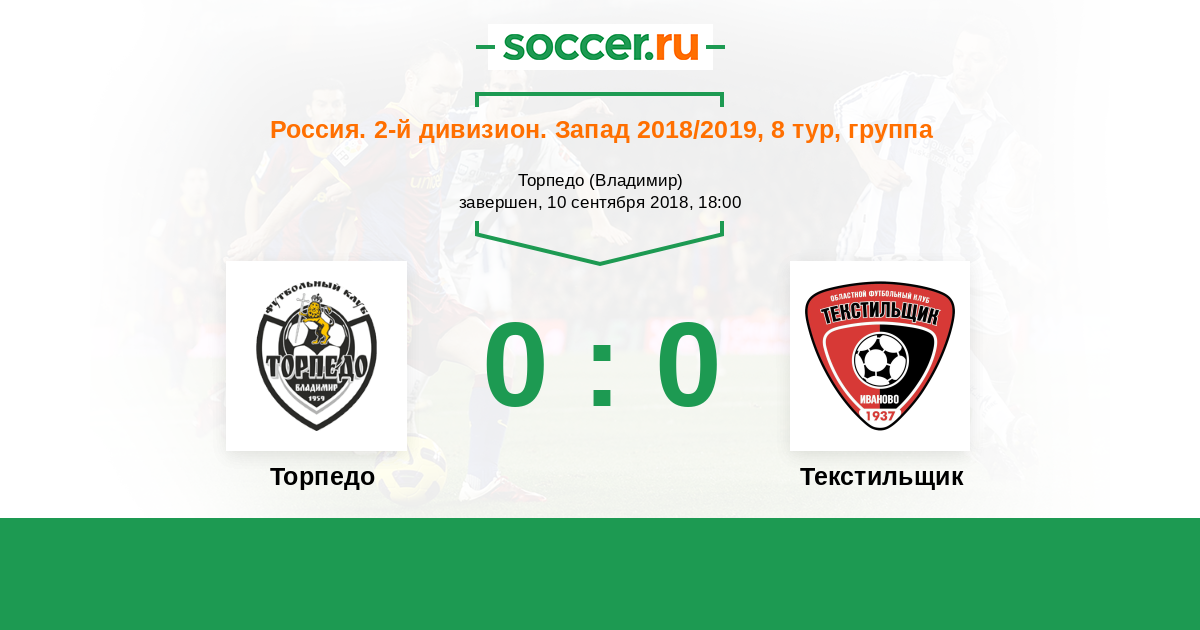 Россия. Вторая лига. Группа 2 06.10.2017 Торпедо Логотип футбольный клуб Торпедо (Владимир) 1:1 Логотип футбольный клуб Текстильщик (Иваново) Текстильщик