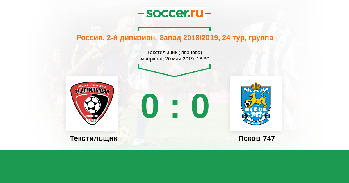 Россия. Вторая лига. Группа 2 20.05.2013 Текстильщик Логотип футбольный клуб Текстильщик (Иваново) 2:1 Логотип футбольный клуб Псков-747 Псков-747