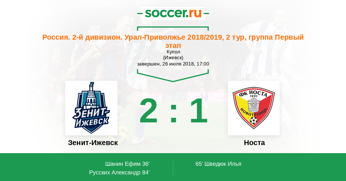 Россия. Вторая лига. Группа 4 06.10.2018 Носта Логотип футбольный клуб Носта (Новотроицк) 0:5 Логотип футбольный клуб Зенит-Ижевск Зенит-Ижевск