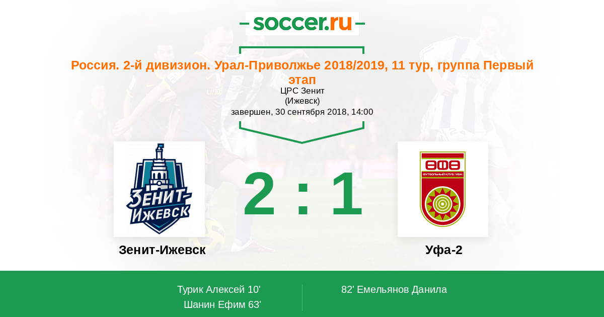 Россия. Вторая лига. Группа 4 11.05.2019 Зенит-Ижевск Логотип футбольный клуб Зенит-Ижевск 2:2 Логотип футбольный клуб Уфа-2 Уфа-2