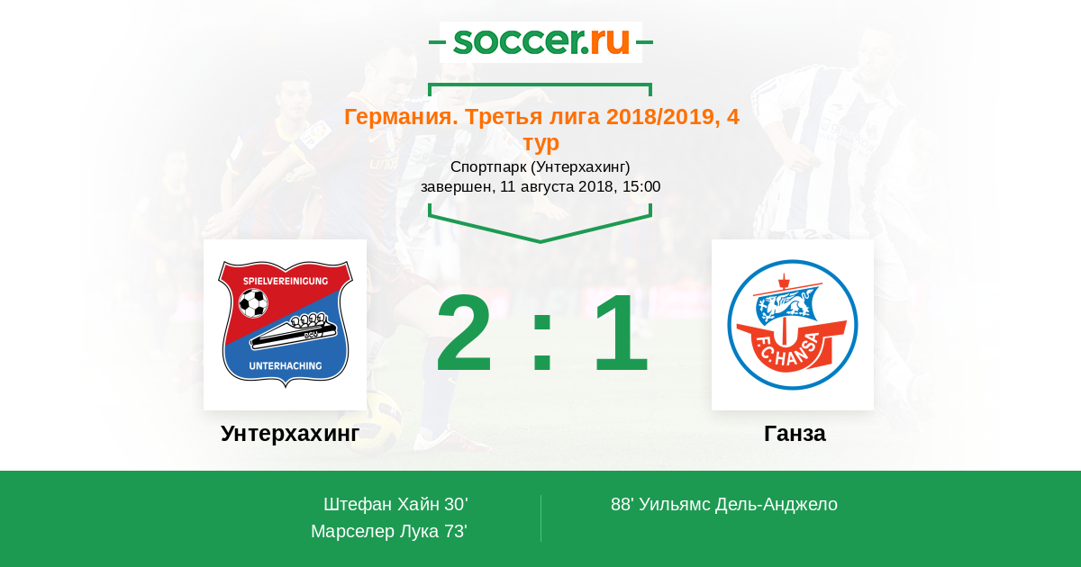 Германия. Третья лига 03.08.2019 Унтерхахинг Логотип футбольный клуб Унтерхахинг 1:0 Логотип футбольный клуб Ганза (Росток) Ганза