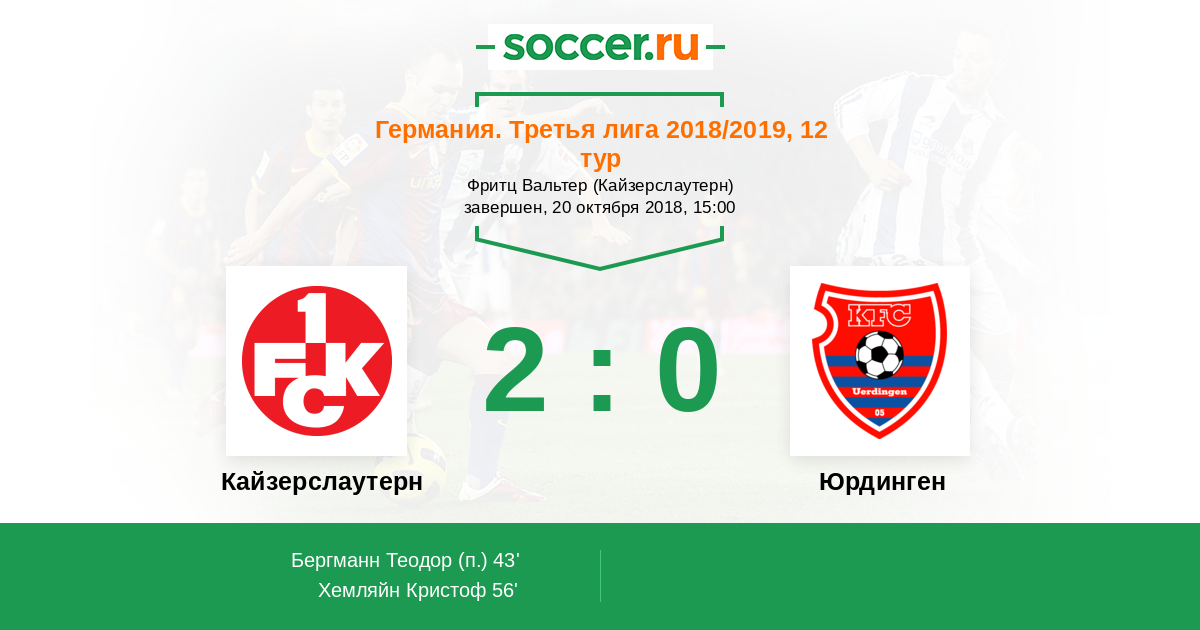 Германия. Третья лига 20.06.2020 Кайзерслаутерн Логотип футбольный клуб Кайзерслаутерн 4:0 Логотип футбольный клуб Юрдинген (Крефельд) Юрдинген