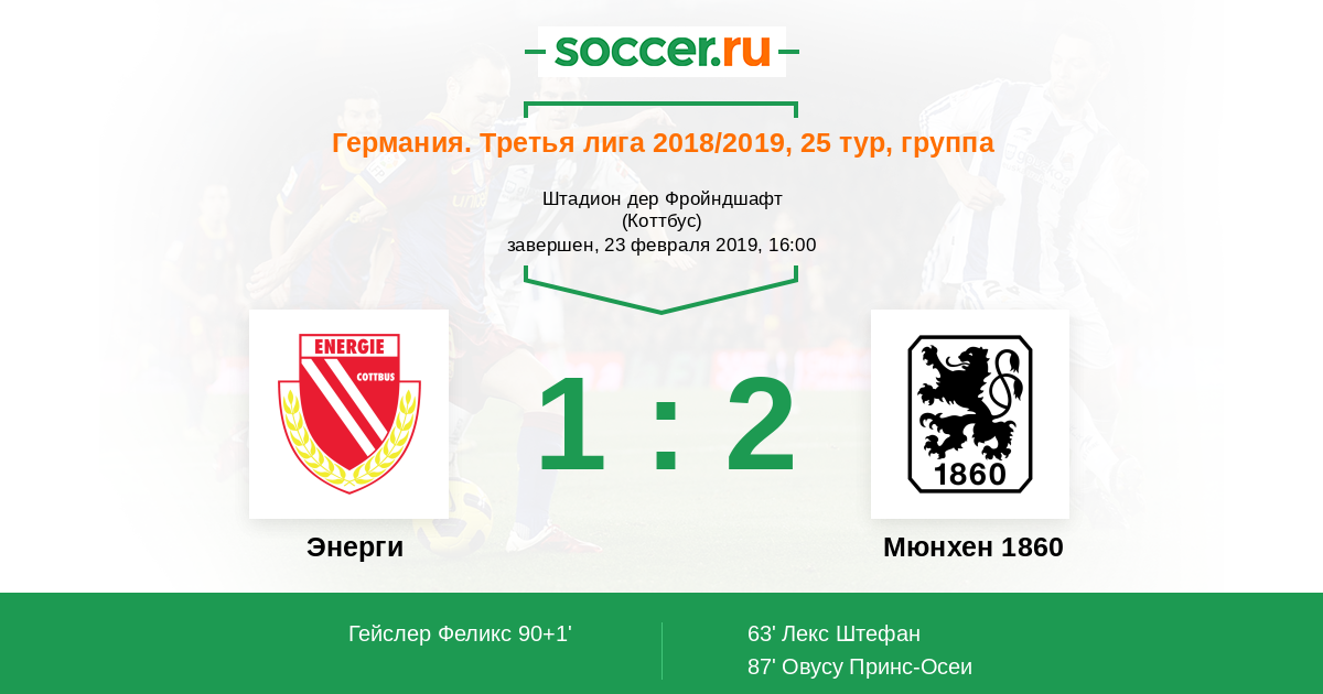 Германия. Третья лига 31.08.2018 Мюнхен 1860 Логотип футбольный клуб Мюнхен 1860 2:0 Логотип футбольный клуб Энерги (Коттбус) Энерги