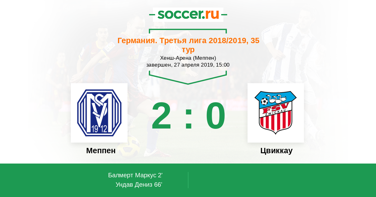 Германия. Третья лига 05.05.2021 Цвиккау Логотип футбольный клуб Цвиккау 0:0 Логотип футбольный клуб Меппен Меппен
