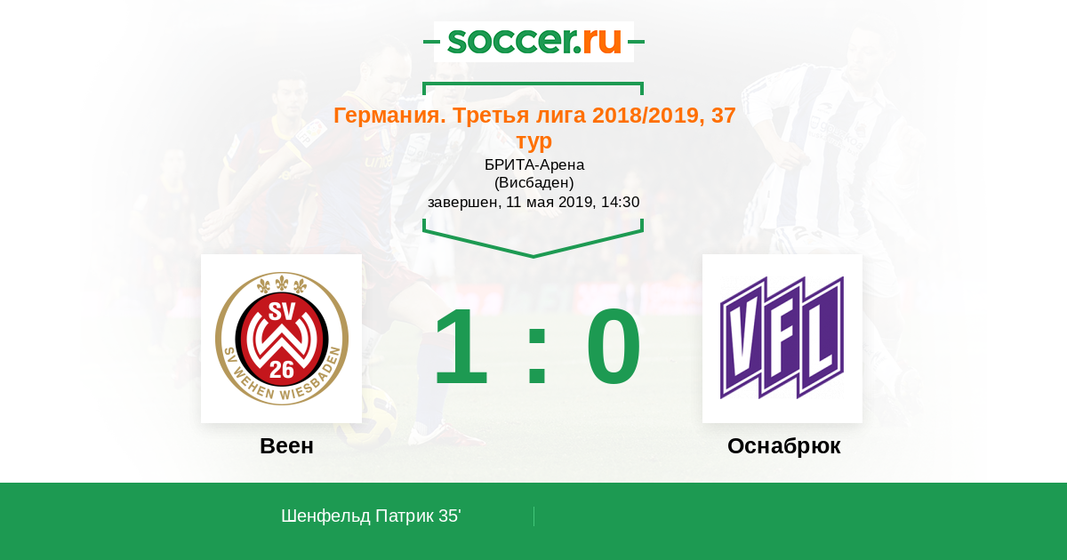 Германия. Третья лига 06.04.2013 Веен Логотип футбольный клуб Веен (Висбаден) 3:2 Логотип футбольный клуб Оснабрюк Оснабрюк