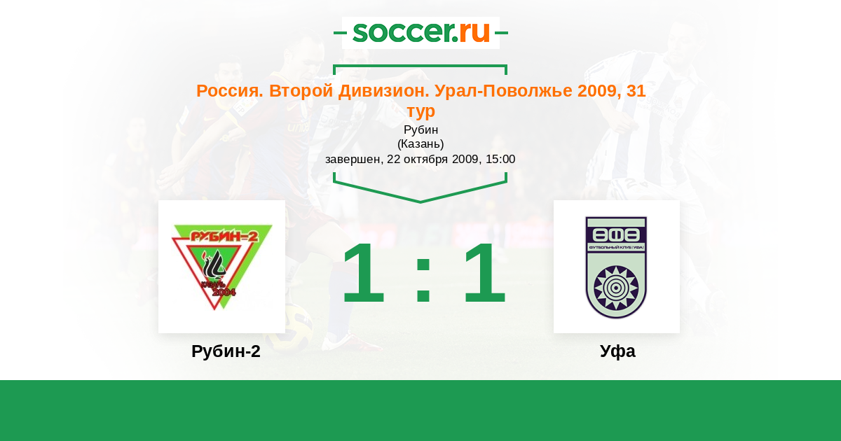 Россия. Вторая лига. Группа 4 15.07.2009 Уфа Логотип футбольный клуб Уфа 1:1 Логотип футбольный клуб Рубин-2 (Казань) Рубин-2