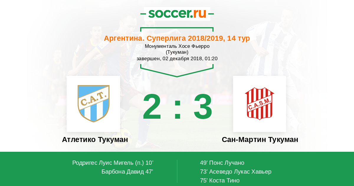 Сан-Мартин Тукуман 4:0 1:0 3:0