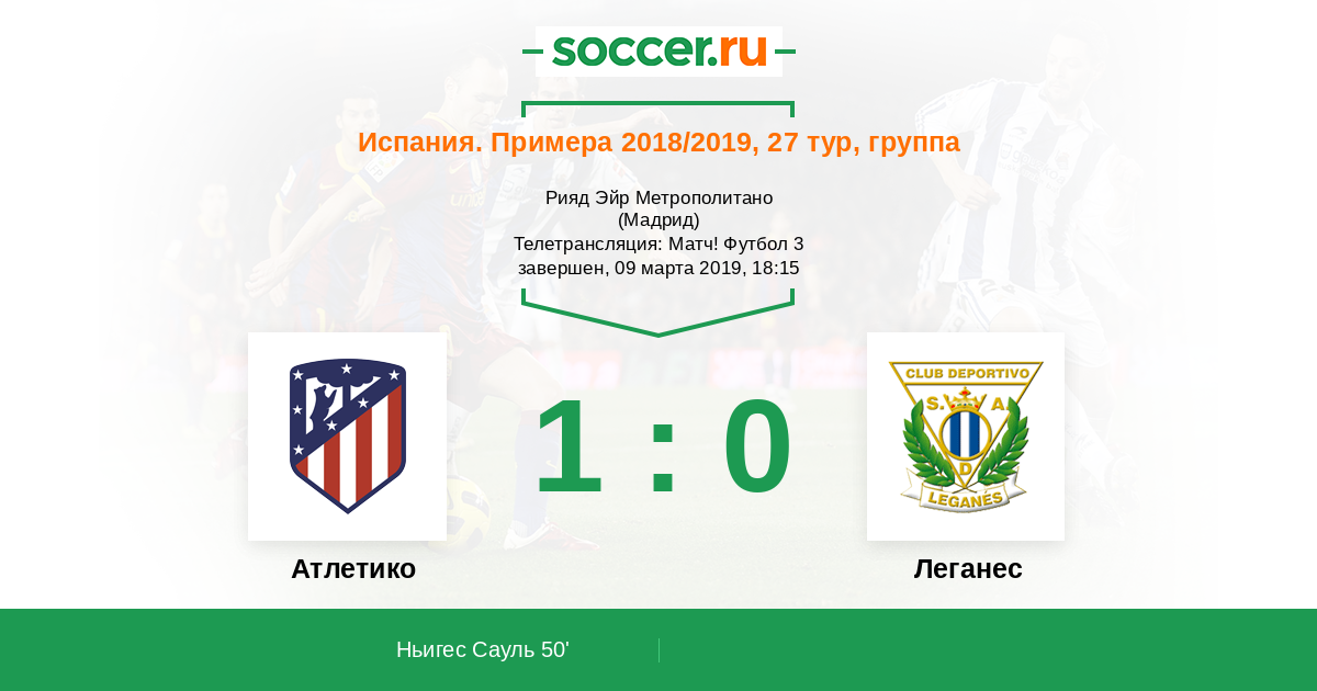Легонес хорошенько измотает матрас и не даст им легкую победу. Атлетико забьет победный гол только в конце матча. 1-0