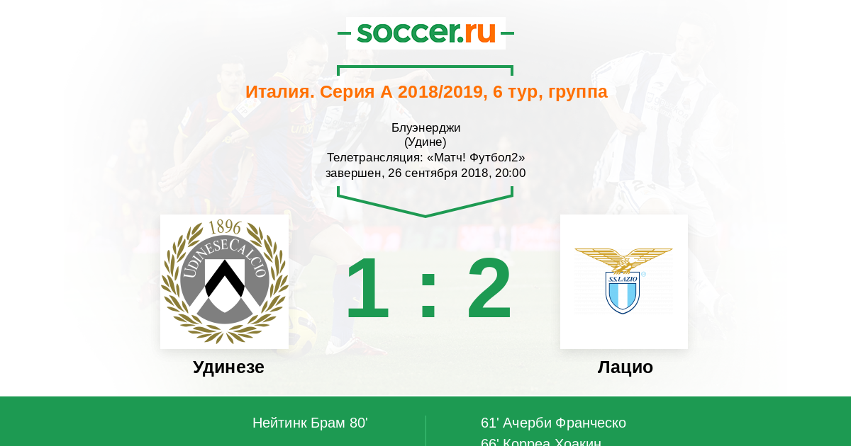 Италия. Серия А 13.09.2015 Лацио Логотип футбольный клуб Лацио (Рим) 2:0 Логотип футбольный клуб Удинезе Удинезе