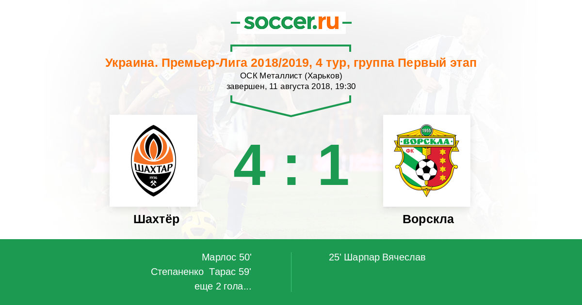 Украина. Премьер-Лига 12.08.2012 Шахтёр Логотип футбольный клуб Шахтёр (Донецк) 4:1 Логотип футбольный клуб Ворскла (Полтава) Ворскла