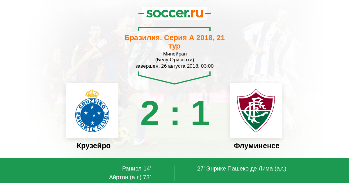 Бразилия. Серия А 21.07.2017 Флуминенсе Логотип футбольный клуб Флуминенсе (Рио-де-Жанейро) 1:1 Логотип футбольный клуб Крузейро (Белу-Оризонти) Крузейро