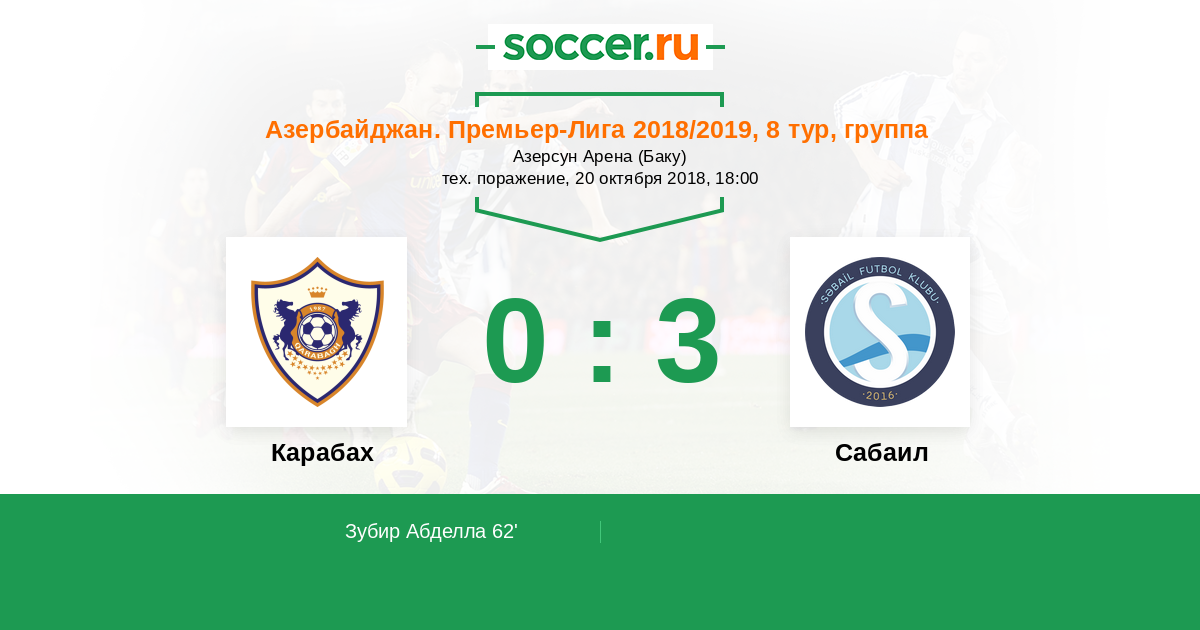 Азербайджан. Премьер-Лига 18.08.2018 Сабаил Логотип футбольный клуб Сабаил (Баку) 0:2 Логотип футбольный клуб Карабах (Агдам) Карабах