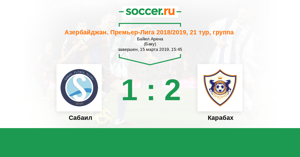 Азербайджан. Премьер-Лига 18.08.2018 Сабаил Логотип футбольный клуб Сабаил (Баку) 0:2 Логотип футбольный клуб Карабах (Агдам) Карабах