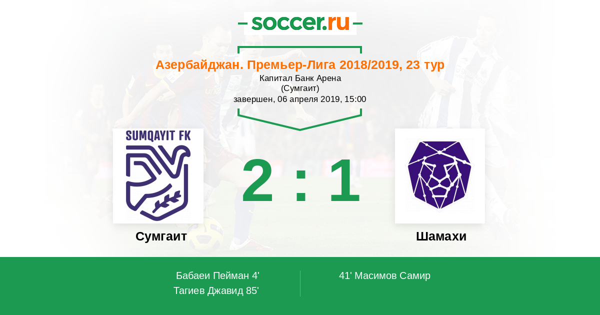 Азербайджан. Премьер-Лига 15.04.2018 Сумгаит Логотип футбольный клуб Сумгаит 2:1 Логотип футбольный клуб Кешля (Баку) Кешля