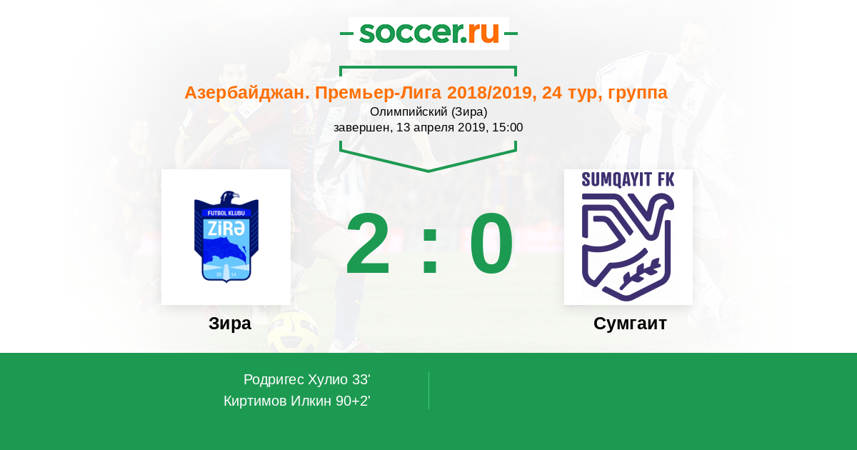 Азербайджан. Премьер-Лига 20.05.2018 Сумгаит Логотип футбольный клуб Сумгаит 1:2 Логотип футбольный клуб Зира Зира