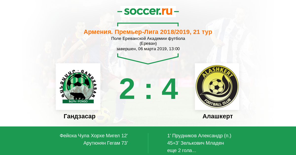 Армения. Премьер-лига 15.03.2015 Гандзасар Логотип футбольный клуб Гандзасар (Капан) 2:3 Логотип футбольный клуб Алашкерт (Мартуни) Алашкерт