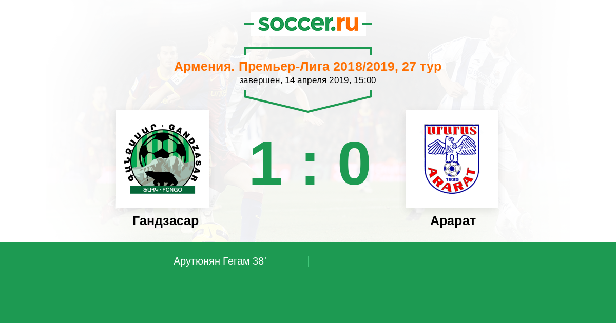 Армения. Премьер-лига 12.04.2015 Арарат Логотип футбольный клуб Арарат (Ереван) 0:2 Логотип футбольный клуб Гандзасар (Капан) Гандзасар