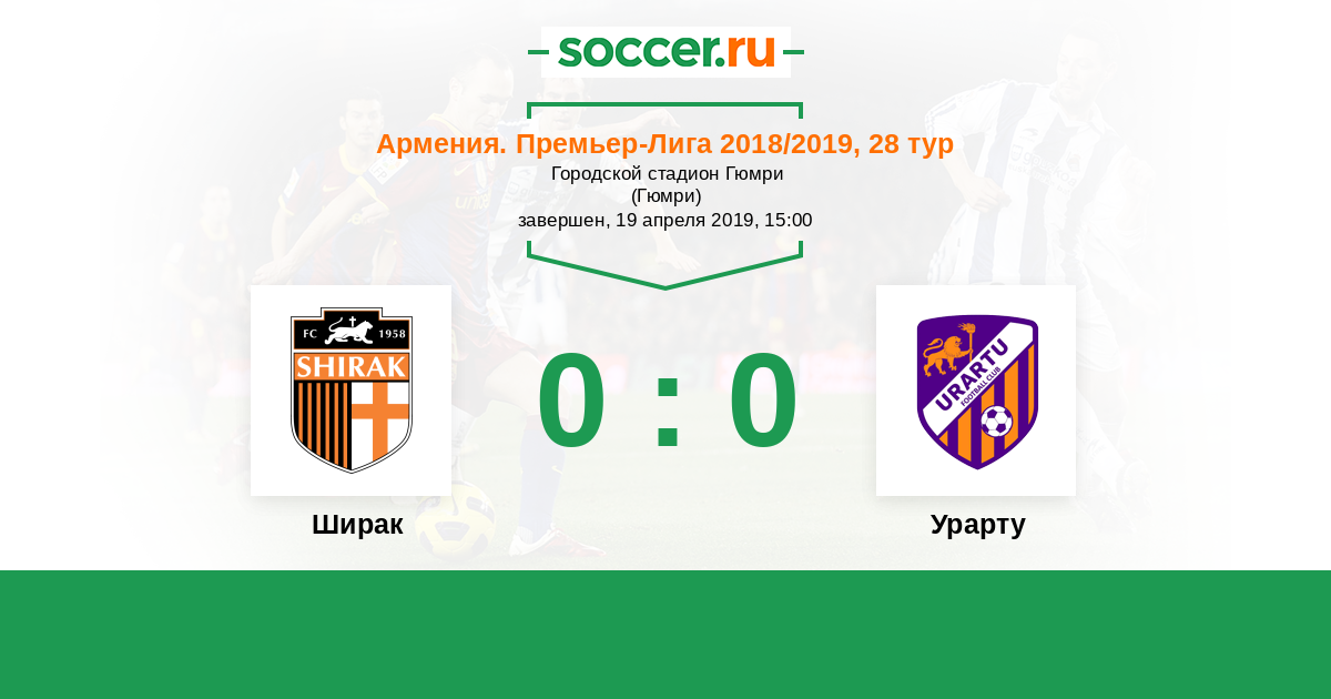Армения. Премьер-лига 05.10.2019 Урарту Логотип футбольный клуб Урарту (Ереван) 2:2 Логотип футбольный клуб Ширак (Гюмри) Ширак