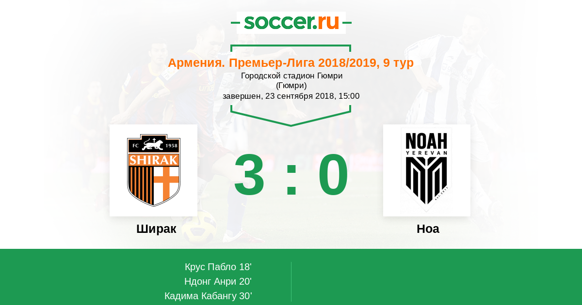 Армения. Премьер-лига 06.07.2020 Ноа Логотип футбольный клуб Ноа (Ереван) 4:0 Логотип футбольный клуб Ширак (Гюмри) Ширак