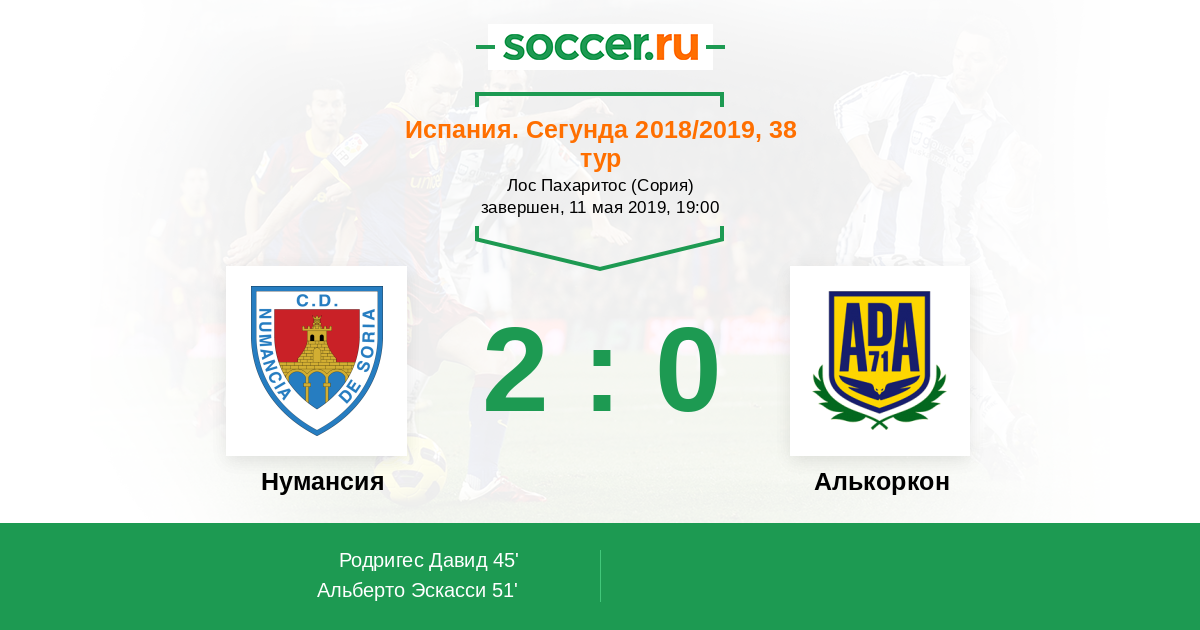 Испания. Сегунда 03.06.2012 Нумансия Логотип футбольный клуб Нумансия (Сория) 0:1 Логотип футбольный клуб Алькоркон Алькоркон