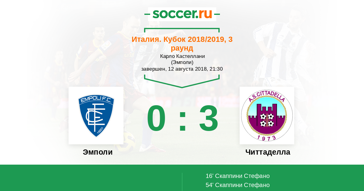 Италия. Кубок 23.08.2008 Читтаделла Логотип футбольный клуб Читтаделла 0:1 Логотип футбольный клуб Эмполи Эмполи