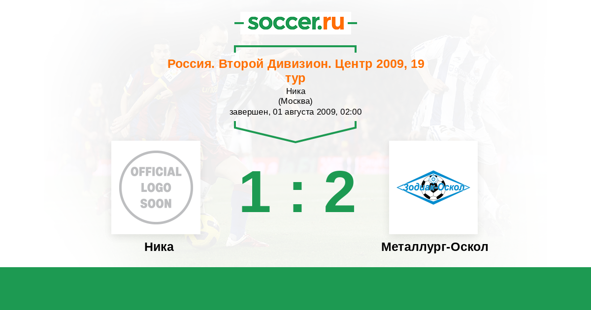 Россия. Вторая лига. Группа 3 06.07.2010 Ника Логотип футбольный клуб Ника (Москва) 2:2 Логотип футбольный клуб Металлург-Оскол (Старый Оскол) Металлург-Оскол