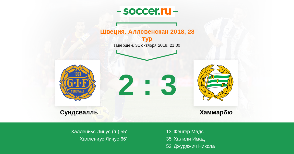 Швеция. Аллсвенскан 29.10.2017 Сундсвалль Логотип футбольный клуб Сундсвалль 1:4 Логотип футбольный клуб Хаммарбю (Стокгольм) Хаммарбю