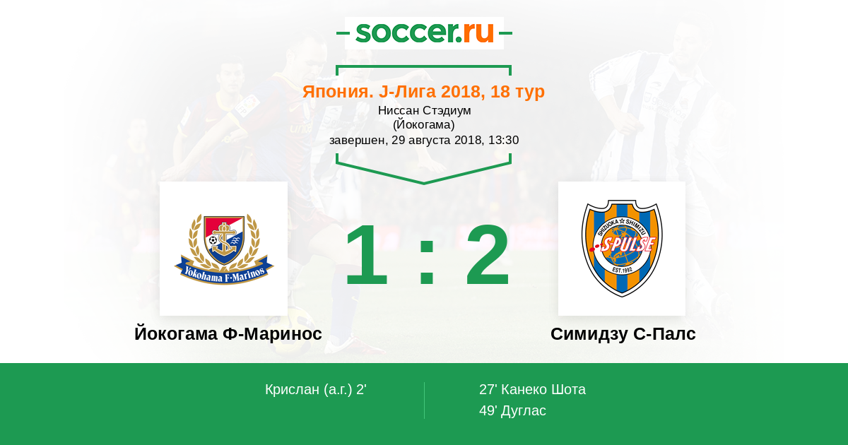 Япония. J-Лига 1 31.03.2018 Симидзу С-Палс Логотип футбольный клуб Симидзу С-Палс 0:1 Логотип футбольный клуб Йокогама Ф-Маринос Йокогама Ф-Маринос