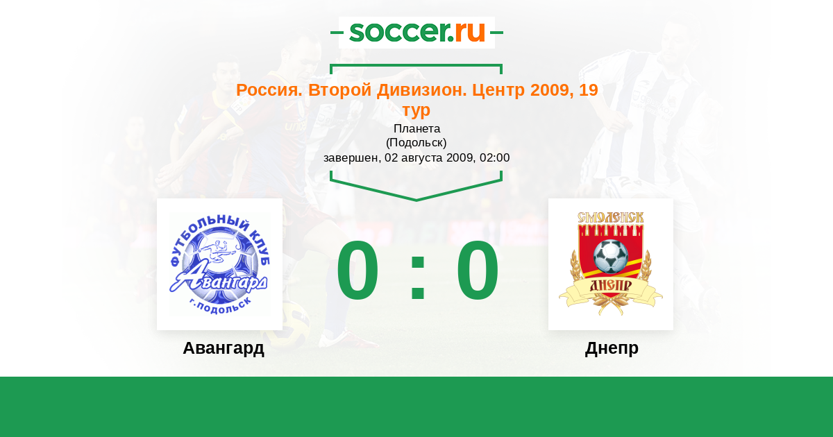 Россия. Вторая лига. Группа 3 04.05.2009 Днепр Логотип футбольный клуб Днепр (Смоленск) 0:1 Логотип футбольный клуб Авангард (Подольск) Авангард