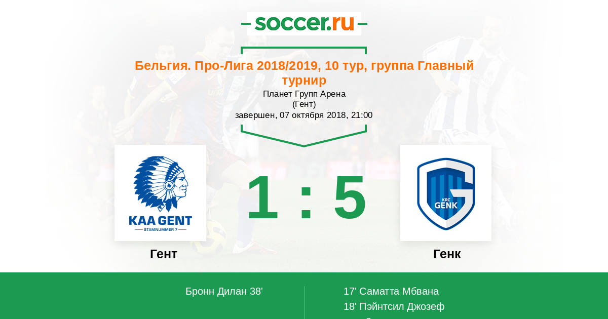 Бельгия. Про-Лига 06.10.2013 Гент Логотип футбольный клуб Гент 1:2 Логотип футбольный клуб Генк Генк