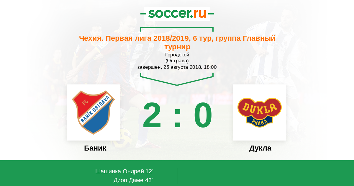 Чехия. Первая Лига 17.03.2018 Баник Логотип футбольный клуб Баник (Острава) 1:2 Логотип футбольный клуб Дукла (Прага) Дукла