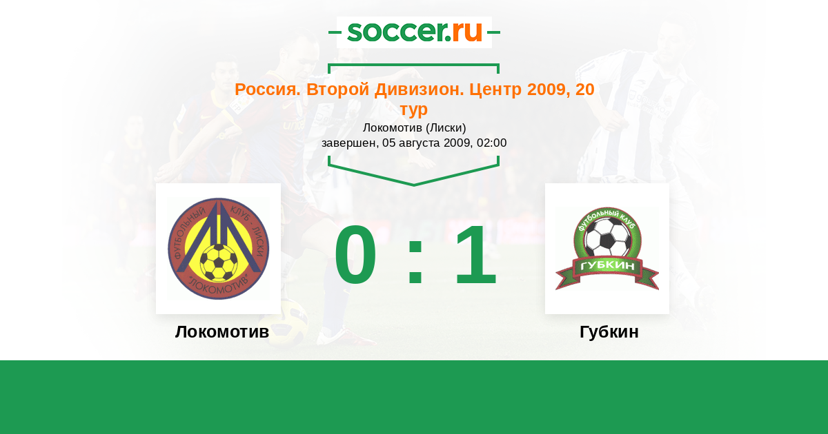 Россия. Вторая лига. Группа 3 07.05.2009 Губкин Логотип футбольный клуб Губкин 0:0 Логотип футбольный клуб Локомотив (Лиски) Локомотив