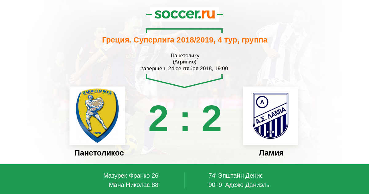 Греция. Суперлига 22.04.2018 Панетоликос Логотип футбольный клуб Панетоликос (Агринио) 1:0 Логотип футбольный клуб Ламия Ламия