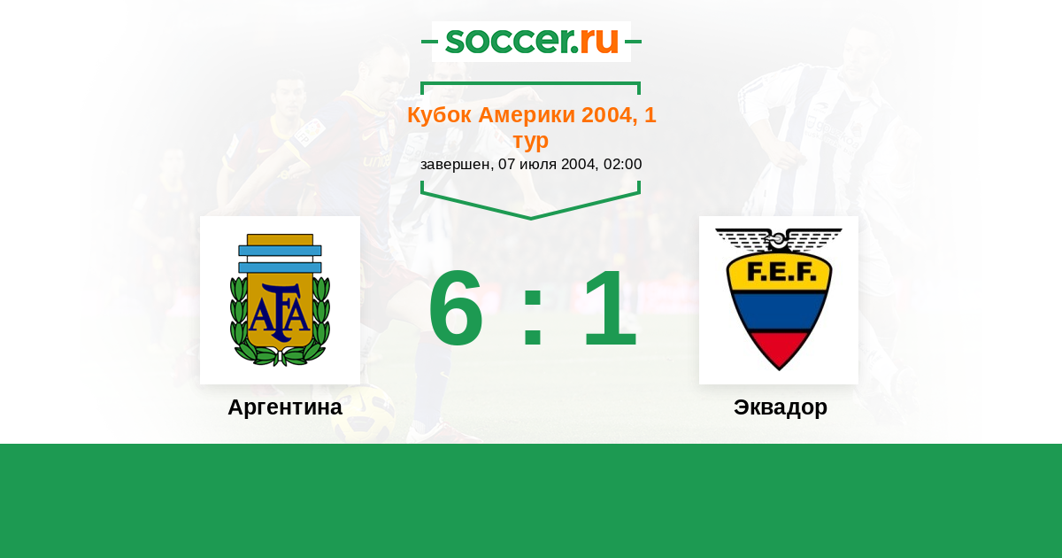 Отбор ЧМ. Южная Америка 29.03.2004 Аргентина Логотип Аргентина 1:0 Логотип Эквадор Эквадор