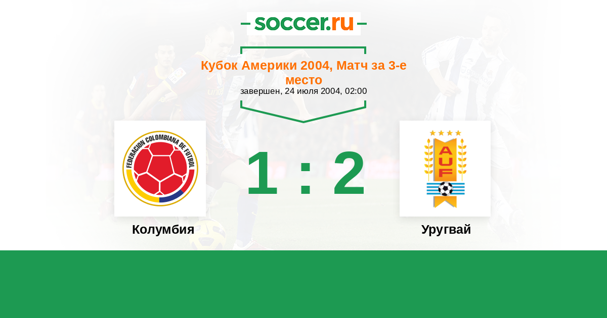 Кубок Америки 19.07.1995 Уругвай Логотип Уругвай 2:0 Логотип Колумбия Колумбия