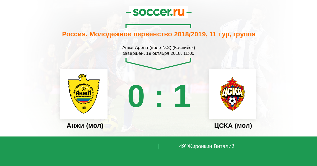 Россия. Премьер-Лига U21 22.10.2011 Анжи (мол) Логотип футбольный клуб Анжи (мол) (Махачкала) 2:1 Логотип футбольный клуб ЦСКА (мол) (Москва) ЦСКА (мол)