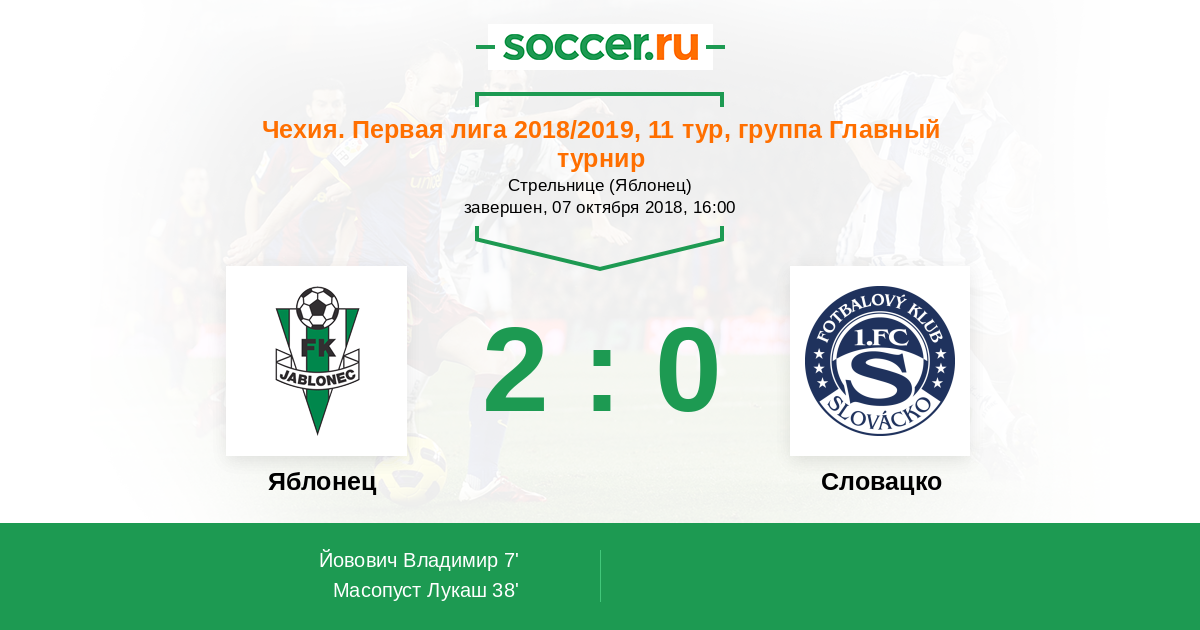 Чехия. Первая Лига 26.05.2018 Яблонец Логотип футбольный клуб Яблонец (Яблонец-над-Нисоу) 2:0 Логотип футбольный клуб Словацко (Угерске-Градиште) Словацко