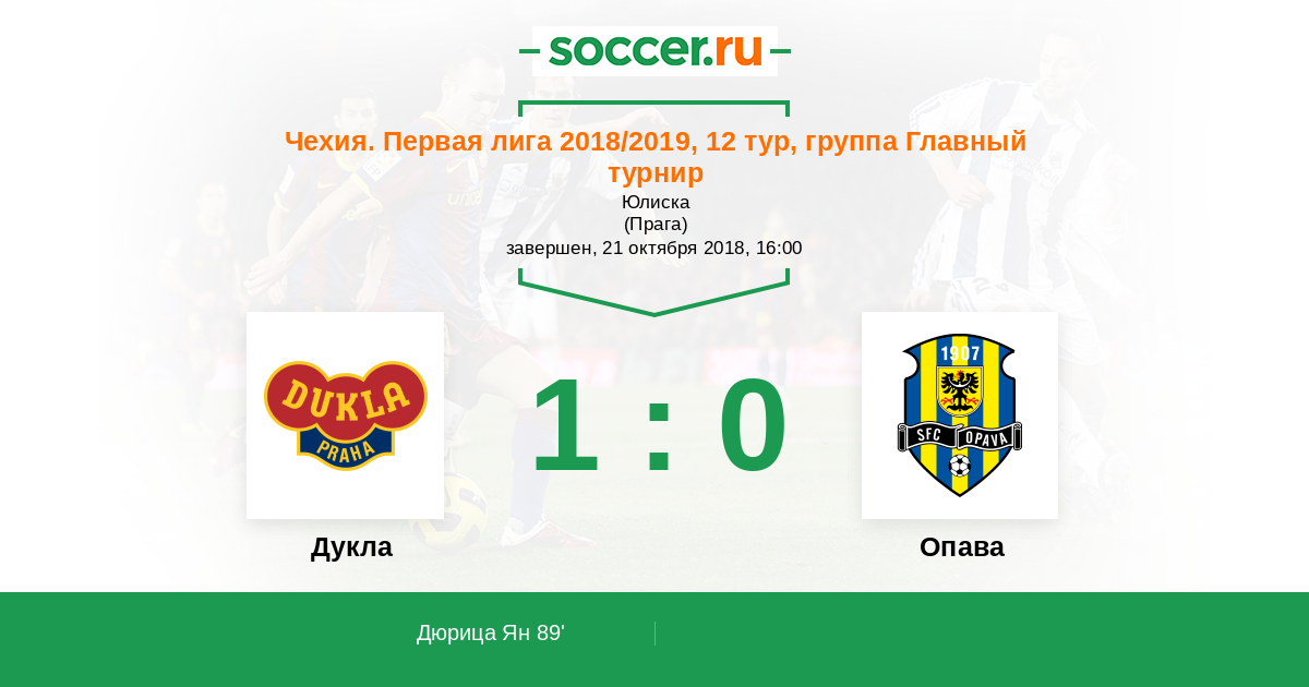 Чехия. Первая Лига 21.05.1999 Дукла Логотип футбольный клуб Дукла (Прага) 3:1 Логотип футбольный клуб Опава Опава