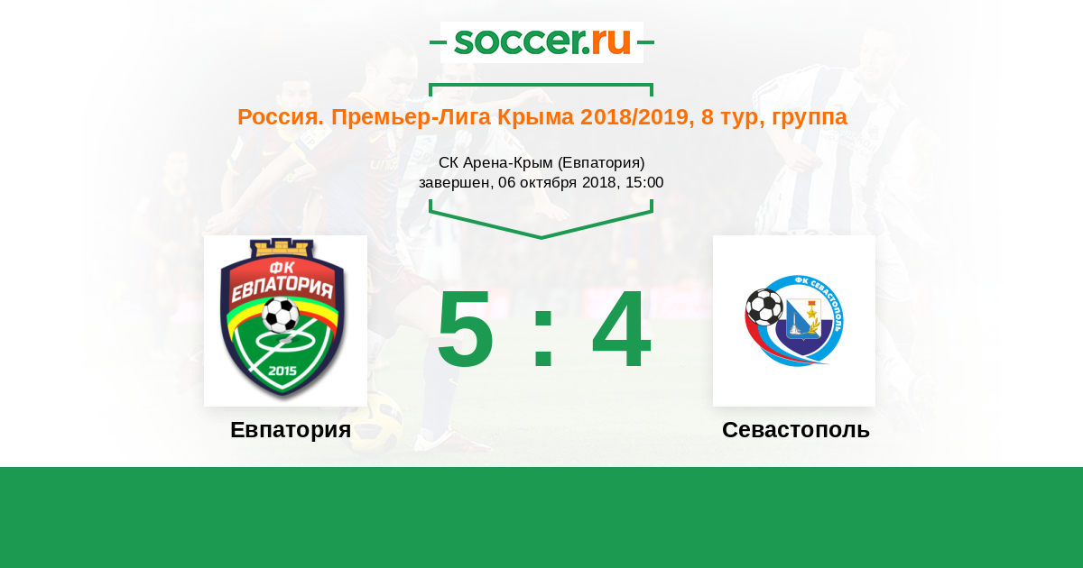 Россия. Премьер-Лига Крыма 02.06.2018 Севастополь Логотип футбольный клуб Севастополь 1:5 Логотип футбольный клуб Евпатория Евпатория