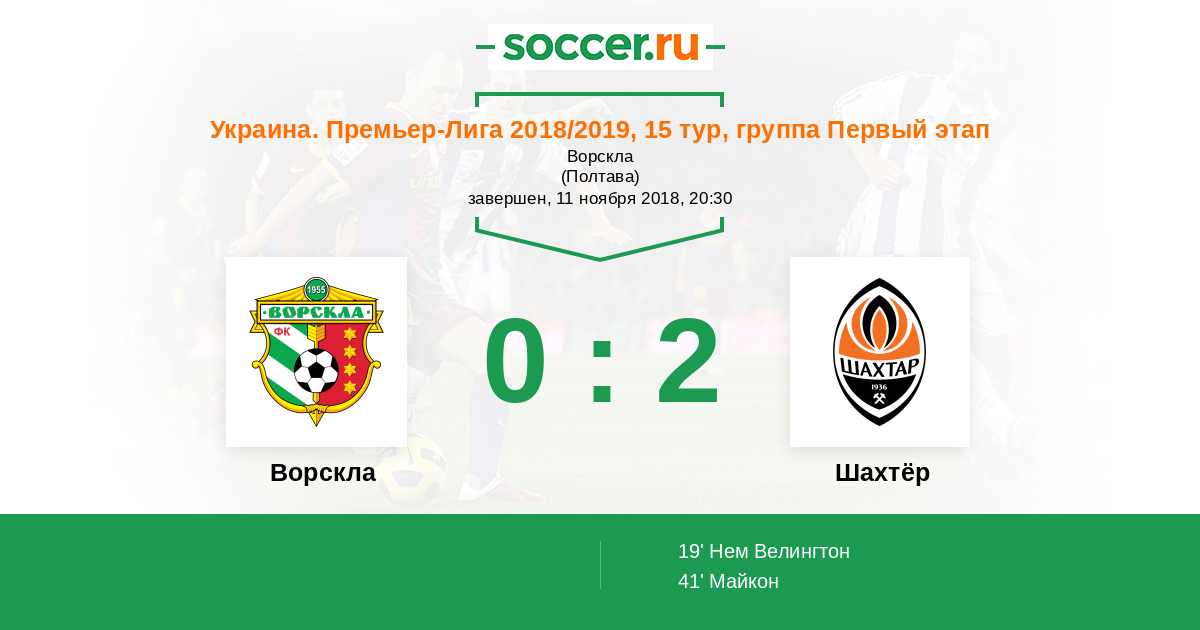 Украина. Премьер-Лига 11.08.2018 Шахтёр Логотип футбольный клуб Шахтёр (Донецк) 4:1 Логотип футбольный клуб Ворскла (Полтава) Ворскла