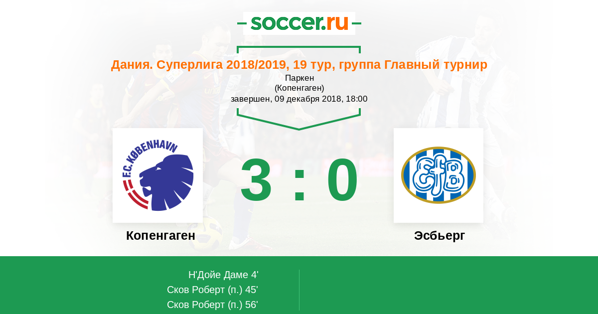 Дания. Суперлига 02.09.2018 Эсбьерг Логотип футбольный клуб Эсбьерг 0:2 Логотип футбольный клуб Копенгаген Копенгаген