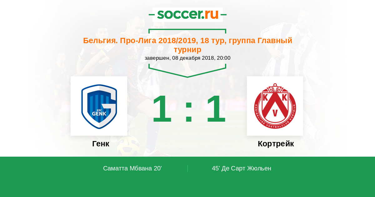 Бельгия. Про-Лига 28.10.2012 Кортрейк Логотип футбольный клуб Кортрейк 1:1 Логотип футбольный клуб Генк Генк