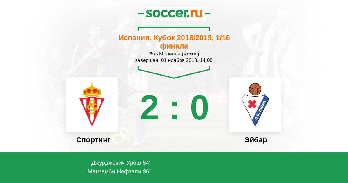 Испания. Кубок 06.12.2018 Эйбар Логотип футбольный клуб Эйбар 2:2 Логотип футбольный клуб Спортинг (Хихон) Спортинг