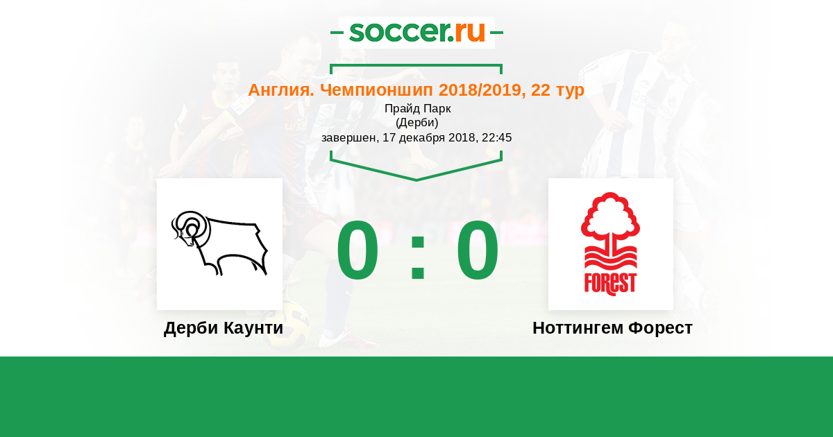 Англия. Чемпионшип 11.03.2018 Ноттингем Форест Логотип футбольный клуб Ноттингем Форест 0:0 Логотип футбольный клуб Дерби Каунти Дерби Каунти