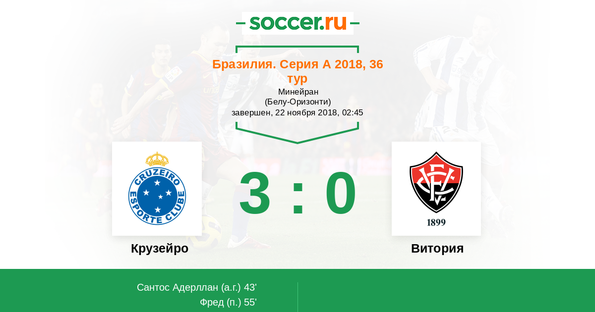 Бразилия. Серия А 19.11.2017 Витория Логотип футбольный клуб Витория (Сальвадор) 1:1 Логотип футбольный клуб Крузейро (Белу-Оризонти) Крузейро